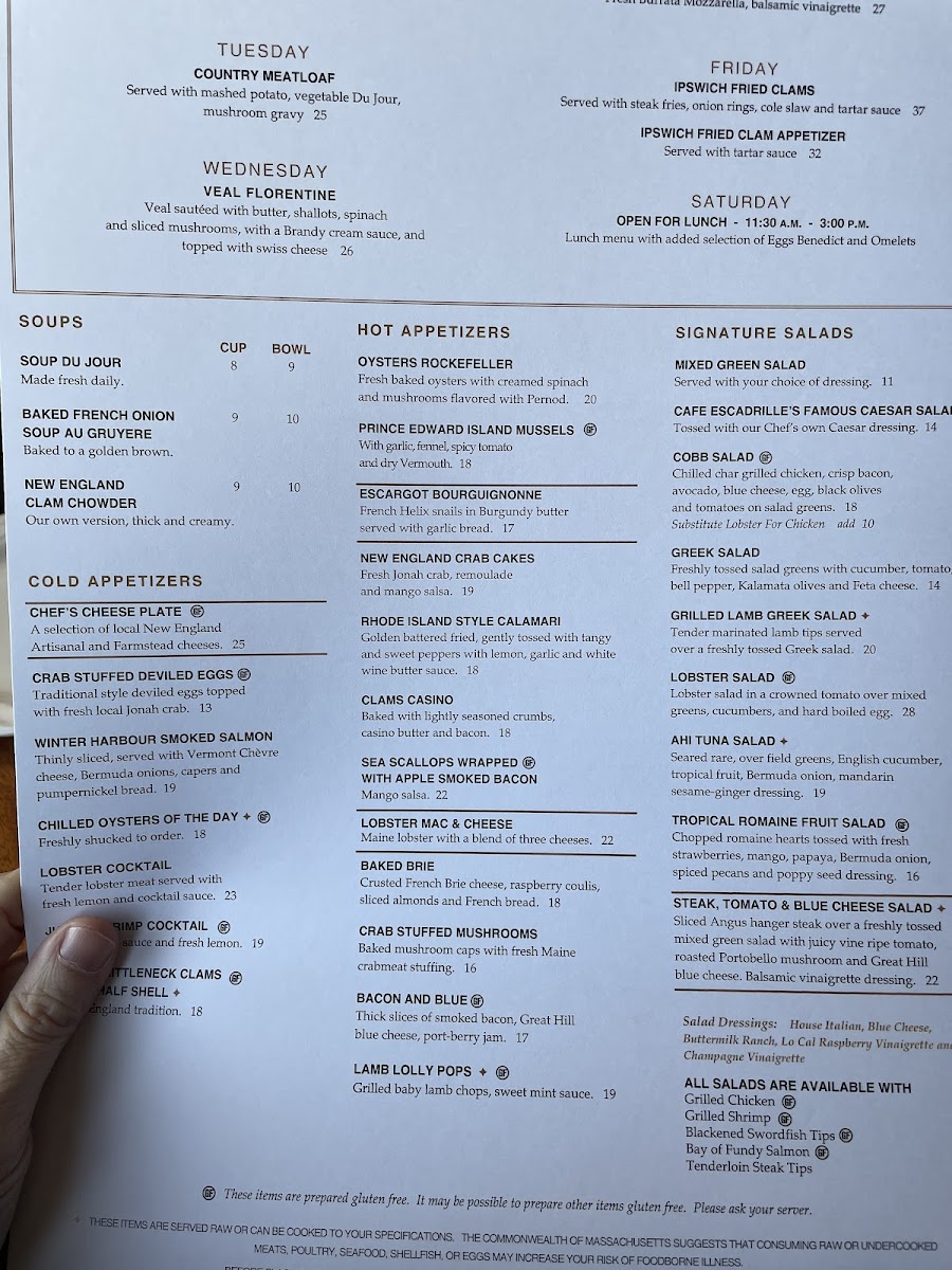 Cafe Escadrille’s commitment to quality is evident in their seafood dishes as well; Peter Guglietta praised the baked haddock and broiled sea scallops, highlighting the restaurant's ability to cater to large parties while maintaining exceptional service. The ambiance, characterized by timeless charm, enhances the dining experience, making every guest feel special and welcomed.